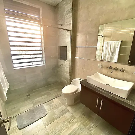 La Villa Casa Campestre Ocarros dispone di un bagno con una doccia accessibile ai disabili, una vasca idromassaggio e un bagno con WC separato. I teli da bagno garantiscono un'esperienza confortevole.